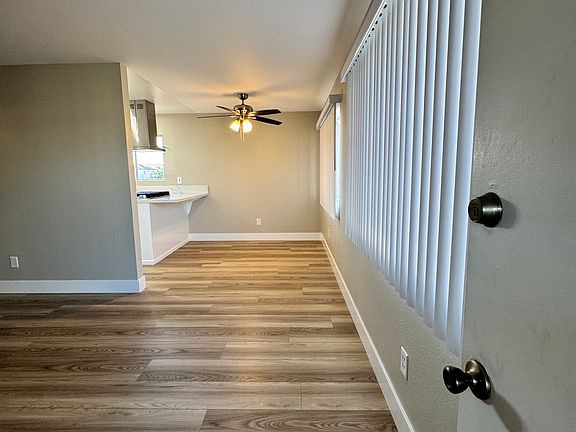 Freshly painted unit with ceiling fans in the dining room and each bedroom. Newly installed flooring in bedrooms, living room and bathrooms. Upstairs unit. Garages below unit. Owner pays for water and trash