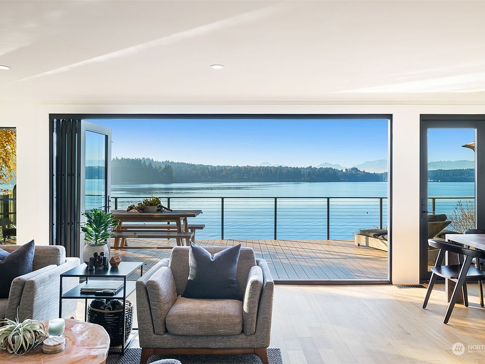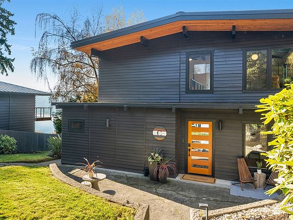 Exquisite modern Fradkin Fine Construction remodeled west-facing waterfront home with stunning Puget Sound and Olympic Mountain views. 50 ft sunny bulkhead, buoy and boathouse a few kayak paddles away from Fletcher Bay. Luxurious primary en-suite offering tranquil retreat + 2 add'l bedrooms and 3 refined baths in main house. Includes 1162 sq ft guest quarters, home gym, art studio plus 2 car garage. Accordion doors fully open to west offering incredible inside/outside living during summer months. Take in orca, seal, eagle and other native wildlife sightings along with incredible sunsets year round. Beach comb to Fletcher Landing or explore nearby Gazzam Lake Trail. 10 min to downtown, ferry and top rated schools. Island life at it's best!