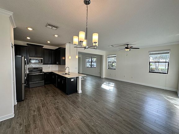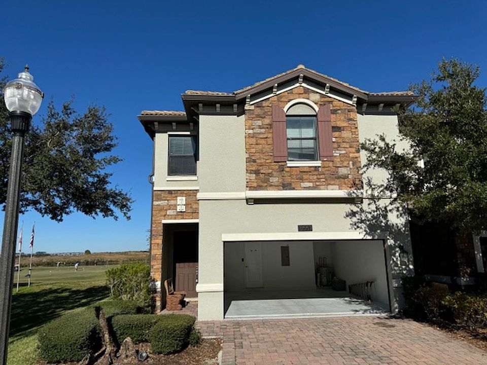 Large 4 bed and 3.5 bath townhome with over 2,100 sqft and 2 car garage. Located in The Vistas at Champions Gate. Enjoy only having neighbors on one side and beautiful view of the golf course on the other with this great END UNIT townhouse. Downstairs you have a large living room / dining room, a beautiful modern kitchen, half bath, and 2 car garage. Upstairs are 4 bedrooms with 2 full ensuite bathrooms, a shared full bathroom, and laundry closet. All bedrooms come with ceiling fans. Rent includes cable/internet package. Just a short walk away is THE VISTAS CLUBHOUSE including the community pool, hot tub, GOLF SIMULATOR, exercise room, pool tables, foosball, and SAUNAS!! Right next to the home is the world famous Champions Gate international golf course clubhouse where you can enjoy food, drinks, and the AMAZING VIEW!! Also within walking distance is the OMNI RESORT for another dining option. Just a few miles away from local shopping, restaurants, I-4 access and Theme parks. As if that wasn't enough, you also have access to THE CHAMPIONS GATE OASIS CLUBHOUSE including the large community pool, kids splash area, lazy river, water slide, movie theatre, and restaurant / bar. This unbelievable town house is available now!! Friendly and professionally managed. Email, Call, or text for showings: Jeff Filegar $90 application fee