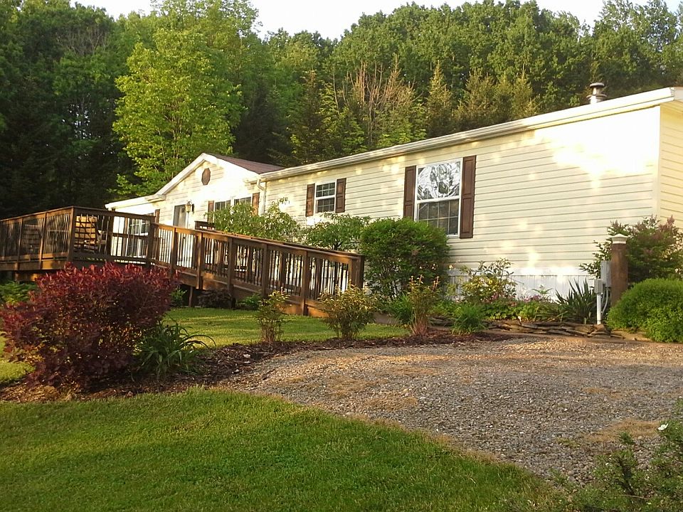 FANTASTIC FINANCE OPTIONS for this beautiful home nestled cozy on 20 acres amongst trees and open space. This 2002 dbl wide home has wonderful upgrades and open floor plan that won't disappoint. Enter thru a spacious foyer to dining room/kitchen, then flows freely to very large living room. 2 Bedrooms & full bath at one end and master bedroom and fabulous full bath at other end. Property also boasts of adorable cabin for guests or in-law and another storage barn/garage that is insulated with office and compressor. This property is delightful ,priced right and ready for new owner.