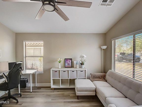 Move In Ready 3 bedroom 2 bath home featuring Vaulted Ceilings in Living/Dining/Family Rooms! Home has been recently remodeled with upgraded flooring countertops, and paint. Main Bedroom features large walk in closet. Inviting Backyard w/Covered Patio and Desert landscape. North/South Exposure. Children's Playground and Common Area Close by. Near to the 101 and Westgate entertainment area.