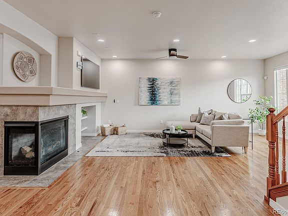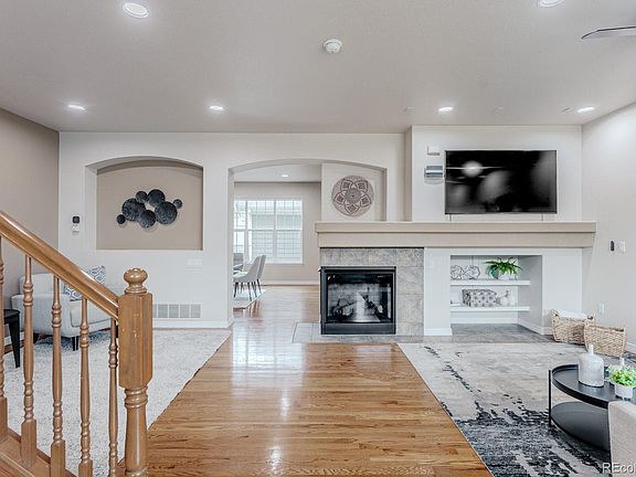A sunlit foyer welcomes you into this charming home, where beautiful hardwood floors flow across an open concept layout filled with an abundance of natural light. A dual-sided fireplace anchors the living and dining areas with warmth and ambiance offering a seamless connection between the spaces thoughtfully designed for living and entertaining. The inviting kitchen is the heart of the home, where warm hickory cabinets pair perfectly with gleaming granite countertops and complement stainless steel appliances. Crafted to create moments that linger, the generous dining room is framed by a wall of custom cabinetry and purposely integrated into the kitchen transforming it into a space that transcends traditional cooking. Upstairs, a bright and versatile loft offers flexible use with a built-in desk and the option to enclose it as a third bedroom. The primary suite with a spa inspired bath is a sanctuary of calm, bathed in soft natural light and embraced by west facing mountain views that invite nature’s beauty into the room. Perfect for morning coffee, grilling or relaxing with friends, the private, sun-drenched deck invites you to relish in Colorado’s great outdoors. The oversized two-car garage provides ample space for vehicles and adventure gear while the unfinished basement is an ideally arranged blank canvas ready for future expansion. Settle into the rhythm of life in The Village of Five Parks, one of Arvada’s most cherished neighborhoods crafted with a deliberate hometown feel that fosters close connections among neighbors and a strong social fabric. Walk to the downtown area where you can spend nights under the stars watching concerts and movies, dine at the restaurants, swim at the pool, work out at the gym, join endless activities at the clubhouse or enjoy a spa day. Miles of trails with sweeping mountain vistas connect to five unique parks for playing and recreating. The award winning Meiklejohn elementary is a quick stroll right down the tree lined street.