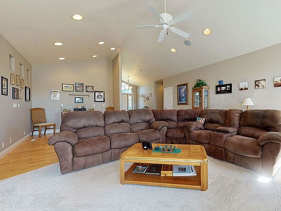 This beautiful ranch is located in a family-friendly neighborhood, on a quiet street, in a country setting. The main level has carpet, hardwood and tile floors, a vaulted ceiling, an office/study, and features a fireplace, and a whole home sound system. Also on the main level are 3 bedrooms, 2 full baths, a half bath, and laundry. The kitchen features hardwood floors, granite counters, a tiled backsplash, stainless steel appliances, a pantry, and a breakfast bar. Appliances stay with the home. The master bedroom is located on the main level and features carpet floors, a high ceiling, a sitting area, walk-in closets, and a deck and Jacuzzi off the master. The attached master bath includes tile floors, solid surface counters, a large jetted tub, and a separate shower. The finished lower level features a fireplace, wet bar, 2 bedrooms, full bath, workout area, and storage area. Lots of built-in closets, cabinets, and storage space. Outside you'll find a treated wood deck, screened porch, and stamped concrete patio with a firepit overlooking the yard with mature trees. Exterior features include a great view, pool, spa/Jacuzzi, a 3-stall detached garage (Heated & Insulated Garage), and a kids playhouse.