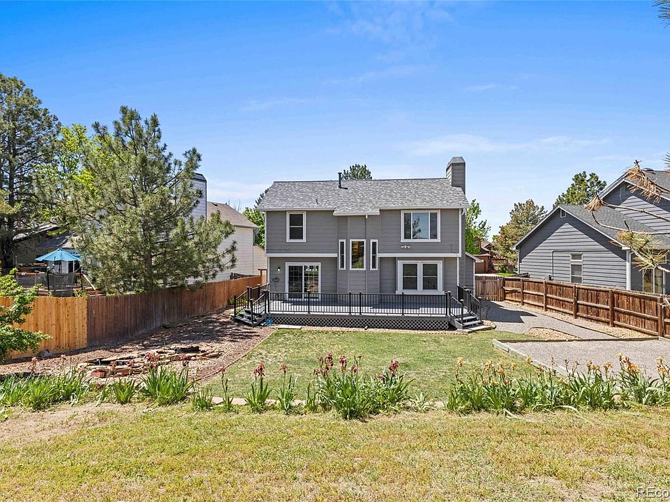 Discover this enchanting home in the exclusive, mature community of Parker, CO, perfectly positioned in a quiet cul-de-sac. Step onto the large, beautifully stamped concrete porch, shaded by a charming pergola. This home has an open concept living area bathed in natural light with exquisite flooring throughout. The kitchen is featuring granite countertops, a modern backsplash, white cabinets, and stainless-steel appliances. Upstairs, new fresh carpet leads to the primary suite, complete with a newly remodeled bathroom featuring a custom shower, expansive vanity, and sleek new flooring. The suite’s walk-in closet is impressively spacious. Two additional bedrooms enjoy easy access to a well-appointed secondary bathroom. The finished basement also has new carpet, offering a versatile bonus flex space, ideal for any of your creative or practical needs. Step outside to a massive deck, perfect for entertaining and overlooking a rare, impressively large backyard with a useful storage shed. The home also has a new roof. Located near shopping and dining, convenience is just around the corner. Located close to shopping and dining options, this home ensures every convenience is just moments away. Seize this amazing opportunity to own a turnkey property that epitomizes comfort and prime location. Act quickly to make this exquisite home yours!