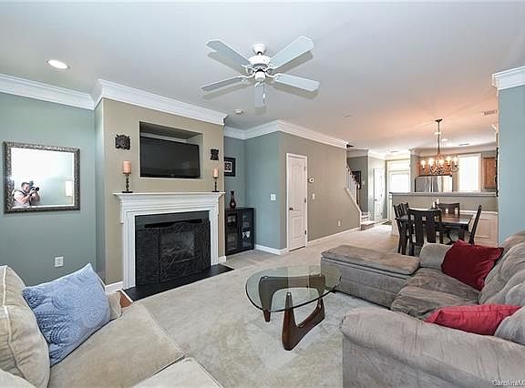 Come live the good life in this two-story full brick townhome w/one car garage! Just steps from restaurants and grocery shopping and overlooking the community pond, this townhome in an ideal location. You can jump on I-485 for a quick commute into Uptown or shoot over to the Huntersville/Lake Norman area for all of your lake area fun. When you enter the front door you'll step into the LR & notice a beautiful gas fireplace w/built-in tv nook, crown molding, designer paint color, 9 ft. ceiling & an open floorplan. The dining area features wainscoting & a beautiful bronze chandelier. The kitchen offers ample counter space, electric range/oven, microwave, dishwasher and the stainless refrigerator will convey with the house w/an acceptable offer. The downstairs also features a powder room & storage closet. The back patio is fenced & offers access to the 1-car rear load detached gar. Upstairs you'll find 2 large bedrooms w/ample closet storage & both w/en-suite bathrooms! W/D conveys!