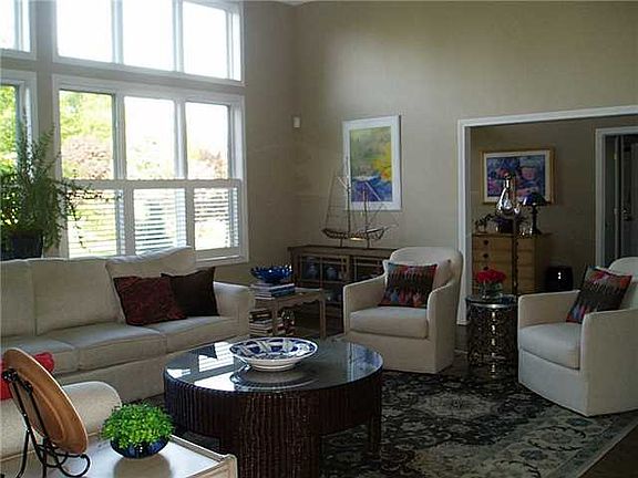 Stunning, free standing, custom ranch on beautiful cul-de-sac. 3 beds, 3 full baths, main level master, open concept. Ceilings: foyer 12', great rm impressive 16'. Hardwood floors, lg upscale kitchen, marble gas fp w/built-ins. Lower level bedroom w/full bath, living area, built-ins, office, storage. Home has surround sound, sec system, private deck, & lg front yard w/park-like setting. Gorgeous!
