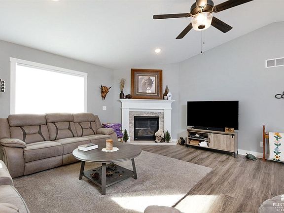 Located in the popular Nelson's Ridge subdivision, this beautiful home is "like new" with added value! The interior features a large open LR/DR/Kitchen with custom cabinetry, neutral color palate, vaulted ceiling & luxury vinyl plank flooring. The master bedroom is spacious with 9' coff. ceiling, large en 'suite bath & walk-in closet adjacent to laundry room. The split plan offers two additional BR's on main level. You'll love light-filled full-finished bsmt with extra-lg FR, two more bedrooms, 3rd BA plus tons of storage. This lot has been professionally landscaped and has irrigation system already installed! Don't miss your chance to own this great home!