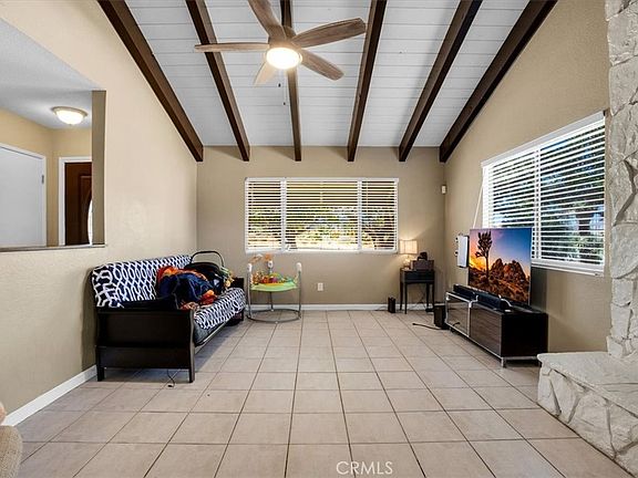 Wonderful Home In Sky Harbor With Incredible View! Located in one of the most coveted areas of the Hi-Desert this 3 bedroom 2 bathroom 1,466 square foot charmer is ready for a new owner! Pulling into the driveway you'll immediately notice the large and mature trees that accent the nearly half acre lot as well as the tile roofing which is a rarity for sure! Stepping in you're greeted by tile flooring, unique entryway, beautiful rock fireplace, and stunning open beam ceilings! Lots of natural light flowing through the dual pane windows that expand upon the floor plan and creating more of an "open" feel. The remodeled kitchen includes tasteful kitchen cabinets, quartz countertops, stainless steel appliances, and opens up to the dining area which lends itself to entertaining! Each of the guest bedrooms are spacious and include wood laminate flooring as well as mirrored closets. The guest bathroom is large and equipped with vanity w/quartz countertop, tile flooring, and full bathtub/shower. Entering the Primary Bedroom you'll find stylish tile flooring, mirrored closets, along with a Primary bathroom featuring tile countertops, hip bowl sink, tiled walk-in shower, and barn door! Now on the covered back porch you can take in a gorgeous desert view and large backyard perfect for planing a BBQ or get together! Additional features include 2 car garage, tasteful light fixtures, storage shed, chain link fencing and more! Don't miss out on this one and book a tour soon!