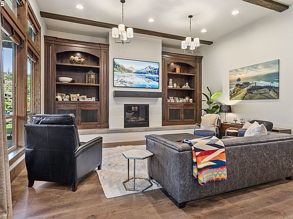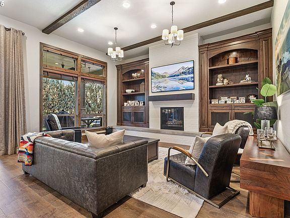 Discover luxury, privacy, and resort-style amenities in this extraordinary 0.44-acre estate located on a quiet cul-de-sac in the highly sought-after Northern Heights neighborhood of Happy Valley. This stunning residence seamlessly blends sophistication with comfort, featuring 20-foot ceilings in the kitchen, quartz countertops, and a full suite of Viking appliances including refrigerator, six-burner range with griddle, oven, microwave, and dishwasher. The main-level primary suite offers private access to the outdoor living space, a spa-like steam shower, and a giant walk-in closet with a convenient laundry chute. Entertain with ease in the expansive covered outdoor living area, complete with heaters, fireplace, built-in Viking gas grill, refrigerator, and TV. The heated saltwater pool and hot tub feature a retractable cover and app-controlled temperature and lighting. The pet rated turf backyard and sport court with lighted basketball hoop ensure endless recreation options, while the Uneekor golf simulator makes year-round play possible. This home is equally functional as it is luxurious, with RV & boat parking, a garage outfitted with two EV charging ports and a dog wash station, and an upstairs loft with a wine cellar. The upstairs bonus room boasts rich hardwood floors, while the dedicated office with dual closets provides the perfect work-from-home setup. Comfort and convenience are enhanced with two-zone heating & cooling, a central vacuum system, hot and cold outdoor water spigots, and a hardwired mesh wireless internet system supported by an exterior camera network. Perfectly designed for modern living, this home offers unmatched style, comfort, and convenience in one of Happy Valley’s most prestigious neighborhoods.