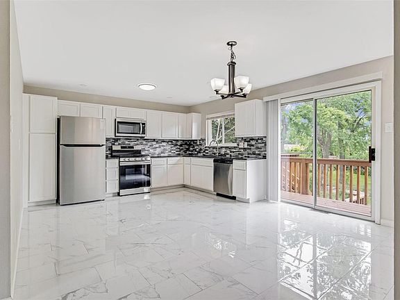 Continue to Show!!! 48 Hour Kickout!!The LOCATION will MOVE You! 4 Sides BRICK! Step Inside to find a Spacious Living Room that OPENS to a Large EAT IN Kitchen. Stainless Steel Appliances, Stone Backsplash, White Shaker Style Cabinets, Stone look Backsplash, Granite Countertops, 5 Burner Gas Stove, Ceramic Marble Look Flooring, 2 Pantries, White 6 Panel Doors & Trim, Wood Floors thruout the rest of the Main floor. Updated Hall Bath w/Tiled Walls & Waterfall Tile in Walk In Shower, Master Bedrm w/Half Bath. Walk Out LL w/some Finish Rec/Family Rm. New Tilt Windows on Main Floor 2022, Refrigerator Stays, HUGE deck overlooks a Fenced Yard. Perfect for Summer BBQ's. Circular Driveway & Possible Tandem 2 car garage. Work Shop area in LL.