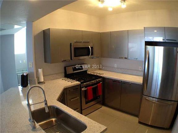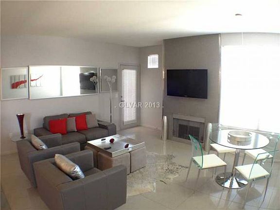 This gorgeous condo is fully furnished. All high end furnishings Very modern, upscale stylings reminiscent of the Panorama Towers, The Martin, Cosmo or Aria. Beautiful High end quartz on counters, Vessel sinks in both upgraded bathrooms, glass computer/office area. If you like modern living, you will NOT want to miss seeing this one! Balcony off Master and Living room for outdoor relaxation. 1.5 car garage.