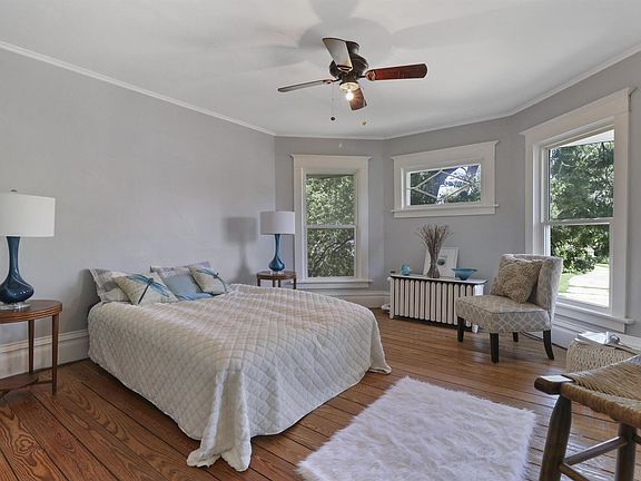 This lovely Craftsman Style, Gordon-Van Tine Company home is full of original character! The home sits on a deep half acre lot with country back drop and mature trees. The house features a white kitchen, STUNNING woodwork, fresh paint and a spacious layout. The outside has so much potential to make it your own. Currently has 2 out buildings: one that can be used for storage and an old chicken coop in the far back corner but would be the perfect spot for an large garage or pole building.. Some of the neat features include exposed brick walls, original hardwood floors/woodwork/doorbell/entrance light, great room and dining room. Windows/Boiler/Furnace/Insulation 2011, Roof 2007. Walls are plaster and walls in LR, DR, 2 foyers/staircases have been skim coated.