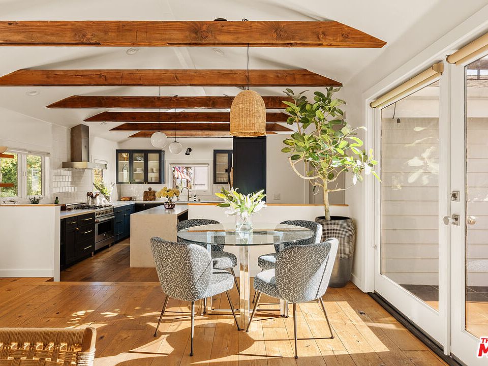 Beautifully updated hideaway perched at the top of the Kirkwood Bowl in Laurel Canyon. Located in one of Los Angeles County's best school districts (Wonderland Elementary), this 3-bed, 3-bath California bungalow offers the quintessential Southern California lifestyle. The main living area is a voluminous space accentuated by high wood-beamed ceilings and includes a fully equipped chef's kitchen featuring a Bertazzoni range, wine fridge, and a large island perfect for entertaining; an open dining area; and an elegant, stylish living room. The main floor is rounded out by a guest bedroom/office with an ensuite bath and a primary suite, each opening through French doors to the private back deck, outdoor dining area, and sunken lounge with fire pit all boasting gorgeous treetop and city-light views. The lower level includes a laundry area and a charming third guest suite with a separate private entrance that opens to an expansive lawn, private hot tub, and a second outdoor dining area.Whether entertaining large groups under the stars or unwinding in your private spa beneath the canopy of mature trees, this rare jewel box offers something for everyone.