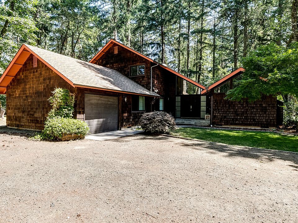 Your own wooded retreat could be yours. Close in country remodeled home located on 5.31 acres. Updated throughout, kitchen has brand new cabinetry, SS appliances & solid granite counter tops. Great separation of space with 1 bd/1 bath on main floor and 3 bd/2 bath on upper floor. Enjoy the picturesque setting in the living room with vaulted beam ceiling & gas fplc. Low maintenance yard with outbuilding. Timber approx. valued at 100k