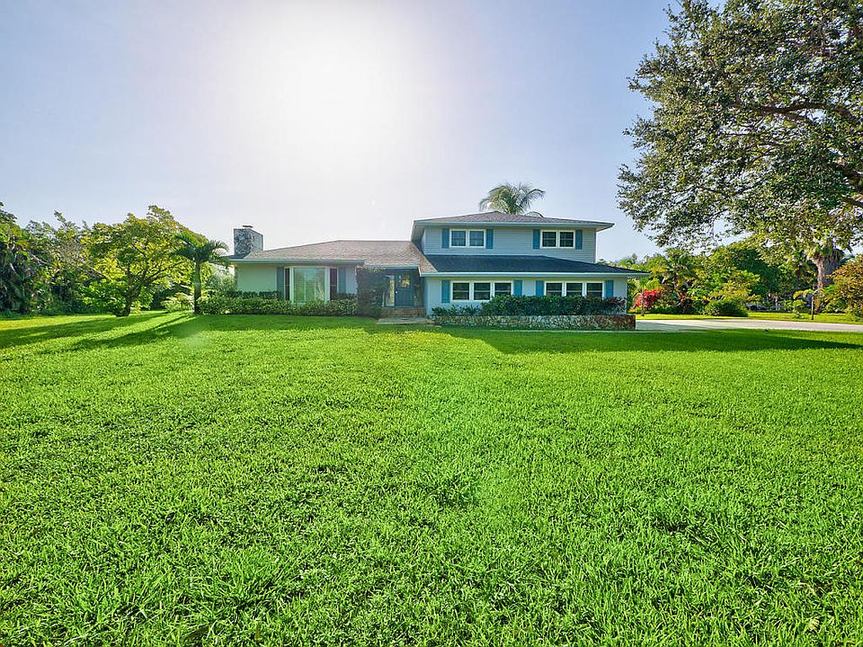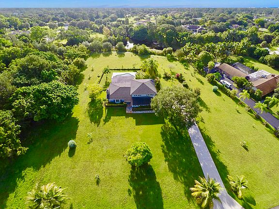 This 2 story split level ranch style home resides on 1.45 acres and backs up to a canal. It features wood floors and plantation shutters throughout. The kitchen features granite counter tops, newer cabinets and SS appliances. All 3 bedrooms are on the second floor. The master bedroom is light and bright with a walk in closet. Master bath has dual sinks, granite tops and a shower. There are impact windows and doors and few shutters. The huge covered screened in patio overlooks the built in pool. Horseshoe Acres is a fabulous community with all custom built homes on minimum of 1 acre sites. It is 5 minutes to I-95 and just one exit to the Gardens Mall. All this on 1.45 Acres in Palm Beach Gardens. All Sizes are Approximate. This is an Estate Sale Sold As Is.