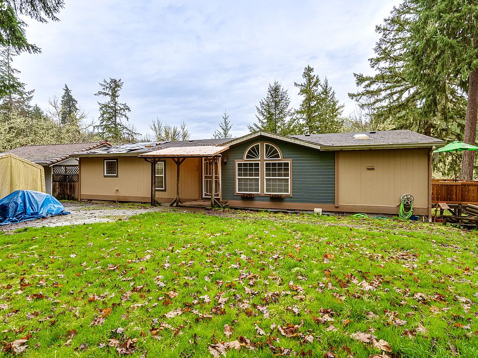 Manufactured home with another permited structure used for storage (not included in sq footage). Country feel on the edge of Eugene. This home features 3 bedrooms 2 full bathrooms vaulted ceilings and plenty of storage space. Side patio with county views. Seller needs 24hr notice to schedule showing please. Times for showings are 4pm-6pm M-F and 9am-6pm weekends.