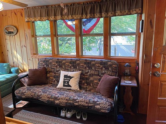 First Time on the Market! Charming Seasonal Cabin lake frontage on both Passenger & Lower Rush Lakes! Drive down the long winding tree lined driveway to this well cared for cabin. It offers 3 bedrooms, a 3/4 bath, wonderful three season porch, and great 14' x 32' deck facing the lake with rod iron decorative panels & solar lights. Seller is offering to leave most of the furnishings. Outside you have a picnic patio area, privacy fence, a 12 x 16 shed with loft and numerous other sheds. The dock has new wheels and decking ready to launch next spring. With 140 feet of lake frontage on Passenger Lake you have the opportunity to fish for pan fish, northerns, bass, & much more. The property extends over Dobosenski Road to Lower Rush Lake where there is 156 ft of untouched lakeshore & heavy woods. Rare opportunity for a Getaway Cabin only an hour or so from the Cities! Only .5 miles to General Andrews Forest & tons of Recreational Trails and Lakes in the Area. Don't Miss this One!