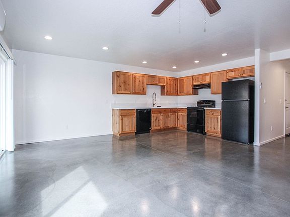 This 2 story duplex has 3 bedrooms and 2.5 baths. Living area, kitchen, 1/2 bath and garage with opener on lower level. Bedrooms and 2 baths up. Floors are all tile, concrete and vinyl. Kitchen appliances refrigerator, electric stove and dishwasher included. Washer/dryer hookup. Mini-splits for heat and a/c throughout. Covered patio and fenced back yard. Assistance Animals Only. No smoking on property. No guarantors. Year lease preferred. $1800 refundable deposit, $200 non-refundable administrative fee and $175 non-refundable black light fee.