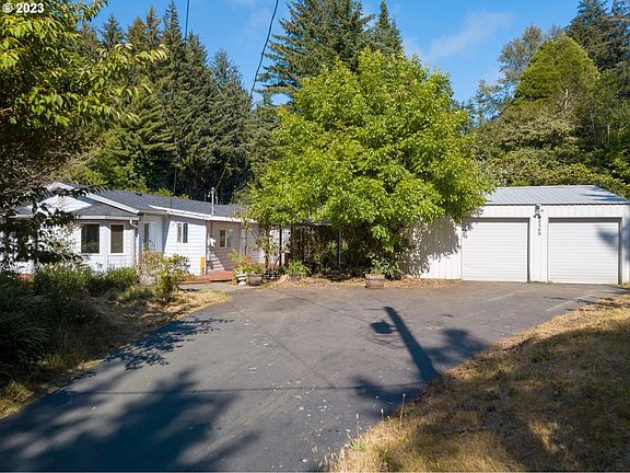 This exceptional real estate opportunity offers an incredible corner lot location with breathtaking views. Situated on 1.12 acres across 3 tax lots, this property boasts privacy, space, and convenience. The charming 2 bedroom, 1 bath homes spans 1,183 square feet with cement board siding, and newer roof approximately 5 years old. A detached oversized 24' x 30' garage ensures ample space for parking and storage, offering practicality and convenience. New septic in 2018. Additionally, this remarkable package includes an adjacent .65-acre lot, further expanding your options and possibilities. The property showcases stunning views of the Siuslaw River, Siuslaw Bridge, and Old Town and is conveniently  located just a mile from Old Town Florence. This vibrant area offers a variety of shops, restaurants, and attractions, ensuring you'll always have something new to discover. Don't miss out on a remarkable real estate opportunity. Whether you're looking for a peaceful retreat or a convenient location close to amenities, this property has it all. Schedule a viewing today.