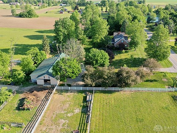 Immaculate hobby farm w/ a custom-built 3 bed/2 full bath brick Cape Cod home perched upon rolling hills featuring a walk-out finished basement & a 3-season sunroom that overlooks the 10 ACRES w/ stream access, fenced pastures, & 44x86 barn w/ 7 stalls - all in the Arcanum School District! Boasting a total of 2,856 sq ft of classic architecture, a front entry welcomes you home. Formal living/dining rooms are perfect for hosting family & friends. A newly renovated kitchen w/ granite counters & custom cabinetry opens to a cozy family room w/ a beautiful brick fireplace, a casual breakfast nook, & the sunroom you will NEVER want to leave that showcases stunning views all year round! Desirable first-floor primary bedroom & a full bath w/ the upper floor providing 2 generously sized rooms w/ walk-in closets, full bath, & an attic. Extend your living space to the finished walk-out basement w/ a family/rec room, huge office/bonus room w/ incredible storage closets, & a laundry/utility room. Gorgeous curb appeal w/ mature trees/bushes & stone flower beds overflowing w/ perennials. Enjoy pleasant sounds of the babbling stream & open views of wildlife from the 2-person hot tub on the deck, covered front porch, or lower-level patio - so many beautiful outdoor entertaining options! Barn offers concrete floors, metal roof, multiple entry doors, electricity/water, covered porch, loft, storage spaces, & includes an insulated workshop/tack room w/ wood-burning furnace! There are 3 fenced pastures, all have access to stream water. Fenced arena & a farm bridge w/ steel I-beams. Efficient NATURAL GAS central heating/cooling & whole house generator. Loved by the same family, this home has never been available for purchase until NOW! Perfect for nature lovers & horse enthusiasts alike, w/ ample space for riding & exploring. Don’t miss your chance to own this serene slice of the country life! Option to purchase w/ 0 Arcanum Ithaca Rd., MLS listing #889692 for a total of 17.59 acres.