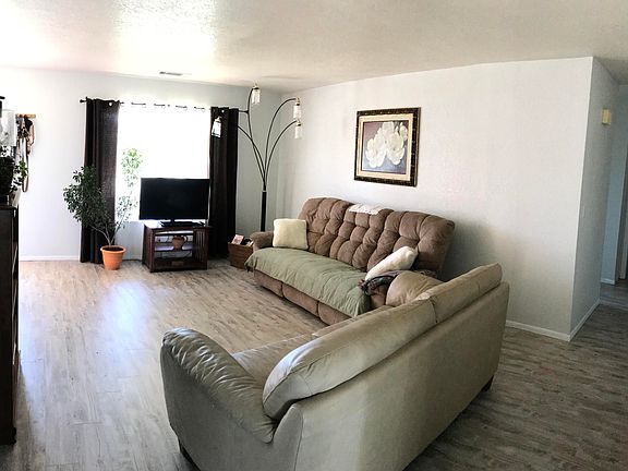 Green living at it's finest. There are solar panels on top of this only 2 year old roof that generate enough power that you have little to no energy costs. Banking the remainder of your power, there is a potential to receive a check every year from the power company!! This recently updated 3 bedroom 1.5 bathroom home has brand new laminate floors, a bright and cheery feel, and a huge back yard. Backyard has raised flower beds, a large patio and a fire pit. Appliances can stay if needed. Affordable living just got more affordable. Call us today to get a referral to a lender. This house would rent for $1400 per month, why not own it for approx. $1500 (with approved credit) and then save on the power bill so it feels like the same amount of money to live there