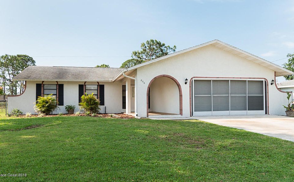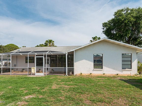 Excellent concrete block home with city water conveniently located in NW Palm Bay. Home is in move in condition and has new interior paint and new carpeting. Living room, spacious kitchen, large dining area plus a 17' x 9' Florida room that is ducted for A/C and heat (not included in living area sq. ft.) plus a 29' x 10' screened patio.The kitchen features smooth surface counter tops, refrigerator, dishwasher, and a stainless steel smooth top range. The master bedroom has a large walk in closet. The master bath has been upgraded and features a large tiled shower and newer vanity. The hall bath has been upgraded as well. The big fenced in back yard backs up to a canal for added privacy and has a storage shed. Additional features include a 20'x8' front porch and ceiling fans.