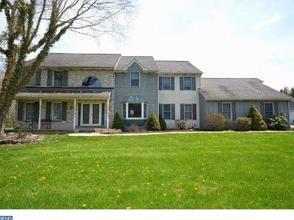 Custom built 4 bedroom, 2.5 bath colonial nestled on over 4 acres. Two story foyer with a turned staircase. Dining with hardwood floors, crown molding and chair rail. The formal living room has crown molding, chair rail and French doors leading to the family room with a stone wood burning fireplace and built in entertainment center. The large eat in kitchen has granite counters, painted glazed custom cabinetry, center island and stainless steel appliances. The great room has a stone wood burning fireplace, recessed lighting and overlooks the cedar deck and beautiful yard with Evansburg Park in the background. The master suite has a sitting area, two walk in closets and a private bath with a soaking tub and double vanity. The finished walk out basement has a wood stove. Full basketball court, bar and close to Skippack shops and restaurants. Potential to accommodate horses on the property. Potential subdivision for an additional building lot.