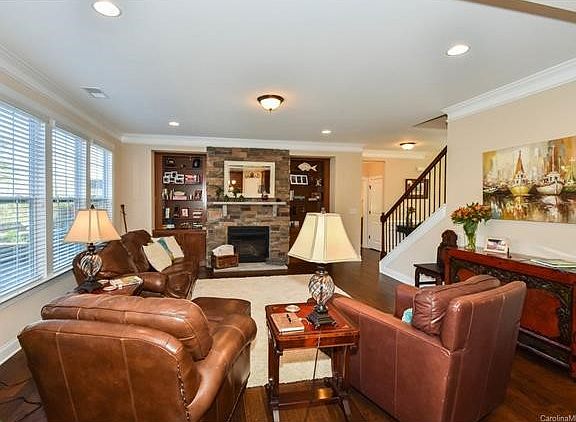 Job change= sale of dream home. Main level w 5" wood floors, guest room/full bath. Kitch w granite, SS app, double ovens, tons of cabs, large island.Great room w floor to ceiling stone fp w built ins. Lovely sunroom. Master suite + 3 large BRs up and 3 more full baths all w ceramic tile. Big media room/6th BR. More than $20K in post closing upgrades include built in garage storage, landscape, hardscape, outdoor lighting, irrigation and fenced yard w wooded view. Great schools, close to Lake Wylie!