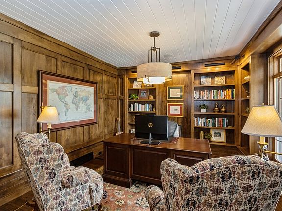 Upon entering through the front door, you're greeted by an open two-sided staircase. To your right, a recently updated custom built office features beautiful built-ins crafted from reclaimed white oak. To your left is the formal living area. Perfect as a library, music room or an additional office.