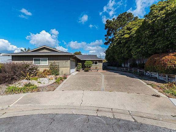 Mid-century Modern! Open concept floorplan is light and bright with large skylights, and gas long fireplace. Updated kitchen with breakfast nook. The home sits back from street on the spacious parcel with plenty of room for parking, small toys or play area. Master suite boasts private bath with large vanity and garden window and more skylights. Two guest bedrooms share hall bath. Private back yard with stucco wall enclosure includes tile patio. Newer vinyl windows throughout with the exception of two garden windows. Quiet location at the end of a cul-de-sac but just a short hop to Harloe Elementary across Halcyon -- close to downtown shopping as well. First time on the market
