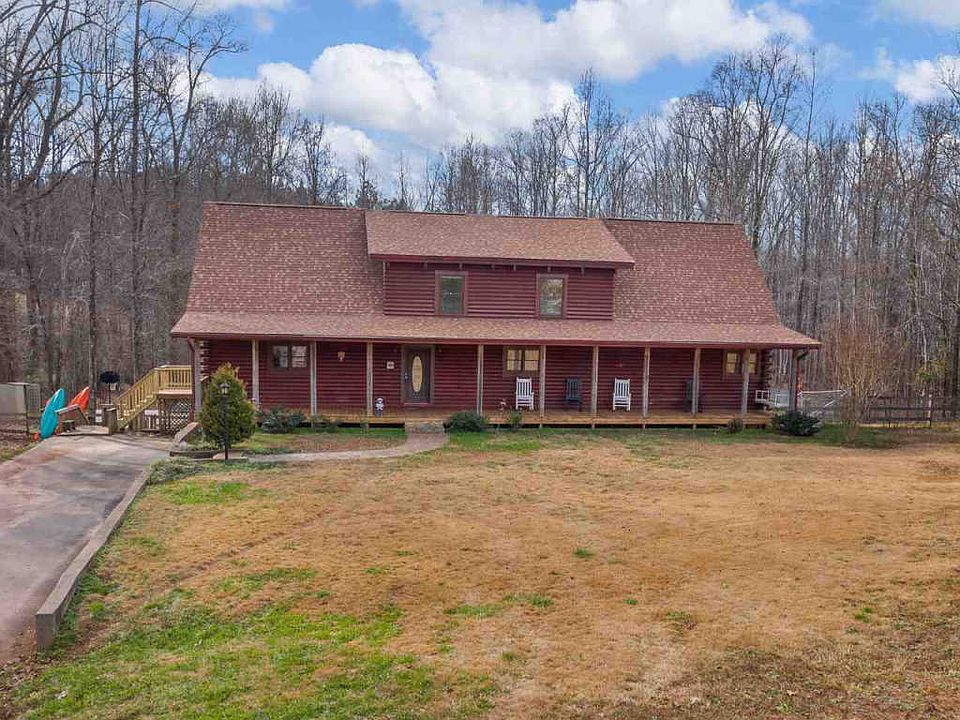 Log home with 3140 square feet above ground, built in 2004 with afull basement partially finished on 2 acres with a creek at the back of the property, 24x24 detached storage, no HOA. Full width front porch is 67 foot long and leads large foyer and main floor with beautiful hardwood floors, open floor plan, cathedral ceilings, 26x21 living room, dining room, kitchen with granite countertops and walk in pantry, half bath and master suite. The master suite is 20x26, has a private balcony, master bath includes a walk-in closet, free standing tile shower, dual vanities and garden tub. Two extra large bedrooms and a loft are upstairs along with a secondary full bath that includes a laundry shoot. The full basement, not included in the sq. footage, has 2 partially finished bedrooms and plumbed for a full bath and provides space for a work out room, hobby room, library and an over-sized work area for tools and/or a man cave. A large mud room leads out of the walk-out basement into the fenced backyard for convenience and ease. Multiple decks, concrete basketball court, conveniently located to Spartanburg, Greenville, Inman and Greer. Hot tub does not convey. Pictures will be available and showings begin on 1/7/21.