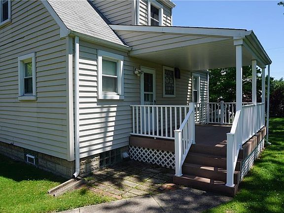 Wonderful 1 1/2 story hone in Harmony. It starts with the curb appeal and when you move to the back yard you will be wow'd! Very large flat lot with detached garage. Covered porch is a dream. Large for entertaining and right off the kitchen. Cozy and well-maintained. So much character as you enter the home through the rounded entry. New retaining wall. New furnace and hot water tank. Sewer line. The living room offers a lot of light with a fireplace. Dining room. Kitchen is galley with all appliances. Master bedroom and full bath on first floor. A plus! 2 bedrooms upstairs. The basement is unfinished with the ability to do so with high ceilings. Laundry. Enjoy this wonderful home in Harmony located on a side walked street.