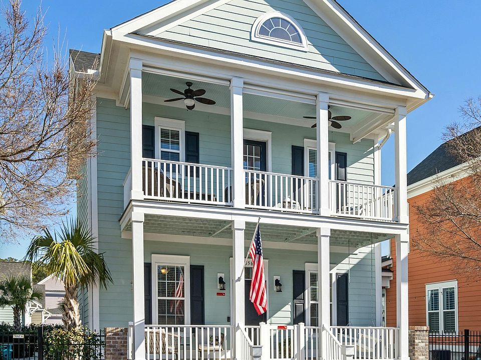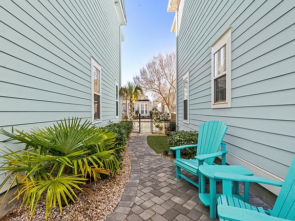 This newer built home in the desirable " Battery" of  Market Common area of Myrtle Beach, SC offers a luxurious Charleston style living experience. The property boasts new landscaping with palm trees, a paver patio, and a fenced yard, creating a picturesque outdoor space.   Inside, the home features 3 bedrooms and 2.5 baths, perfect for entertaining or those looking for additional space. The main floor living areas have been upgraded with newly installed luxury vinyl plank flooring, adding a touch of elegance to the open concept design. Crown molding and 10 ft ceilings further enhance the upscale feel of the home.  One of the standout features of this property is the access to a covered porch from the living areas, allowing residents to enjoy the pleasant Myrtle Beach weather. The owner's suite bedroom also has a trey ceiling and access to a private covered balcony, with retractable shades for privacy or shade, providing a serene retreat. The owner's bathroom is beautifully designed with a double vanity, soaking tub, and a separate glassed-in shower. A nicely appointed walk-in closet completes this luxurious space.  Convenience is key in this home, with a laundry room located on the second level along with another full bath and two additional bedrooms.   Living in "The Battery" community means being just a golf cart ride away from the stunning Ocean beach, a block from Down town Restaurants, Pool with lazy river, Adult pool, kids pool. hot tubs, gym, showers and dressing rooms  and stores,  ensuring endless fun and relaxation for residents. Don't miss out on the opportunity to make this stunning Charleston-style home your own. Buyer is responsible for verification.