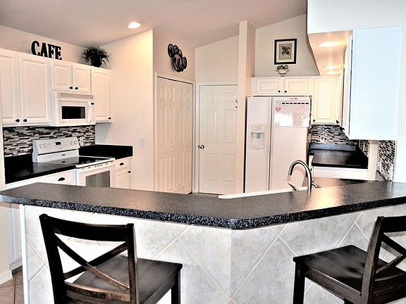 PHENOMENAL FLOOR PLAN! This home has an open floor plan with a functional, stylish kitchen which was recently updated. The kitchen features, white cabinets with dark counter tops, a modern back splash and a charming breakfast nook ideal for evening coffee. Get away in the private Master Suite which opens to a fully paved and screened lanai with your own Jacuzzi. This home is located in a gated community with a community pool and tennis courts. The HOA takes care of the yard, trims bushes and trees so you no longer have to mow in this Florida heat. Not only will the HOA take care of your yard, but they pay for premium cable and basic internet! The AC is two years old and the home has gas water heater and dryer. Be surprised when you walk into the garage which has a small office or flex space fully equipped with hot and cold water!! COME SEE THIS HOME TODAY BEFORE IT'S SOLD!! Home qualifies for 100% USDA financing.