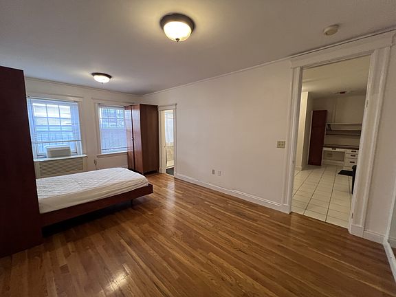 Perfect oversized studio in a lush courtyard building between Harvard and Central Squares! Wrought iron gates open into an impeccable cobblestone courtyard with mature trees and plantings. The unit offers spacious living and sleeping area (Murphy Bed) with high ceilings and elegant time period details. Hardwood floors throughout and large dresser cabinet. The kitchen is separate with tile floors and fully applianced, plus enough room for a small dining table. A classic but semi-modern white bath is outfitted with vanity sink and subway tile. Common laundry and rent includes Heat/Hot Water. Incredible locale amid cafes, restaurants and world class higher ed. Sail the river, walk the Esplanade and enjoy street scene and night life that Cambridge has to offer. The walk score is 97 and commuting by public transit, bike or car is definitely a 10! Available NOW or Flexible, ask agent. Easy to show. Video tour Available.