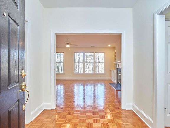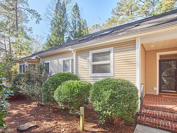 This one is perfect! Beautifully maintained, and well loved one-owner home in the desirable Bush Creek neighborhood of Fearrington. So much thought was put into how light flows through this home, making every day bright, light and warm. The brick porch leads you into a handsome foyer with the spacious, light flooded living room and it's cozy fireplace and built in book shelves just beyond. This home flows so effortlessly from one perfect room to the next. Every space makes sense and the gleaming parquet floors throughout tie the whole thing together so warmly. Wide open kitchen with solid surface counters can accommodate any culinary endeavors. The owners suite has beautiful high ceilings making the already ample footprint seem even larger. Ensuite bath has a walk in shower and separate soaking tub. The walk-in closet has thoughtful built in shelving. Bedroom 2 is also huge and is situated on the opposite corner of the home, offering the perfect proximity when hosting guests. A tidy office with plenty of built in storage and shelving and a separate laundry room with wash basin sink round out the perfect floor plan. This home is tucked perfectly back from the road, so when the time of day comes to enjoy the outdoors, you can ease in by resting on the screened-in-porch out back. This leads directly to a lofty, tree surrounded deck for entertaining or simply watching the wildlife. Birds thrive on this lot and visit often. The crawl space here is high, well maintained and clean as a bean. A whole house water filtration system gives you peace of mind at every tap. Fresh paint throughout. The 2 car garage with large closet means you'll never lack for storage. There is simply nothing to want here...this one really is perfect!