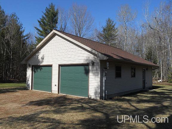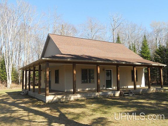 Rural home on 5 acres located just minutes from Manistique. This home was built in 2003 and features a 2 sided wrap around covered porch, 3 bedrooms, 1 bath, open living/dining area and kitchen with appliances included. Also includes a large, 2 car detached and insulated garage. This one is a must see!