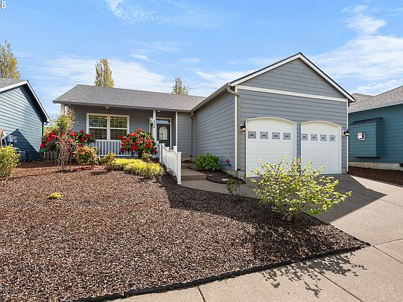 This charming one-level home in Fairview is move-in ready with a brand new roof, fresh interior paint, and new carpet throughout. The vaulted living room welcomes you with a gas fireplace, while the adjacent vaulted dining area features skylights and a sliding glass door that opens to the back patio—perfect for indoor-outdoor living. The kitchen offers a functional layout with updated granite counters and backsplash, a pantry, and a breakfast bar. The spacious primary suite includes a walk-in closet and a private bathroom with tile flooring and a walk-in shower. Two additional bedrooms share a hallway bathroom, and a convenient laundry closet completes the interior layout. Outside, the landscaped backyard includes a patio, ideal for entertaining or relaxing. Located just across 223rd Avenue from the Wood Village Center, you'll enjoy quick access to Fred Meyer, dining, and shopping options. Several nearby parks offer green spaces and recreational opportunities.