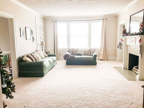 Hearne building on National Road, is a perfectly located 2,287 square foot 3 bedroom 2 full bath condo with crown molding throughout the home and foyer with hardwood floors. Extremely spacious living and dining rooms with new carpet and ample natural light. Condo includes updated kitchen counter tops and flooring. Den, butler's pantry, covered outdoor porch, and laundry hook ups in unit. Also includes detached garage spot, driveway and street parking. All appliances included, along with washer and dryer. Pets allowed.