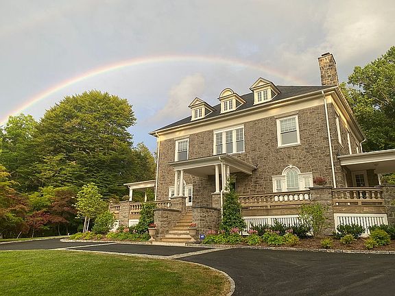 Majestic renovated stone home with impressive circular drive and wraparound porch. Dramatic entrance hall and staircase with 10' ceilings on first floor. Numerous renovations include open floor plan, spectacular commercial grade kitchen, butler's pantry, family room addition with fireplace, mudroom, bathrooms, windows, roof, and 4 zone air conditioning. Large master suite with walk in closet and breakfast bar, two additional bedrooms, 2 baths, sitting room with Palladian window and large laundry room. Large flagstone patio, with outdoor shower and hot tub area. Property also includes a charming renovated one bedroom barn apartment. Beautiful and private grounds with specimen plantings. "Eithercoe" straddles the county line of Chester and Montgomery counties on a total of 3.08 acres, one deed with two tax parcels. Tredyffrin assessment is $553,790 and Upper Merion assessment is $96,900. Combined Upper Merion and Tredyffrin taxes for 2018 is $18,628. Charm of yesteryear with all today's amenities. Must see to appreciate this exceptional property, perfect for entertaining!