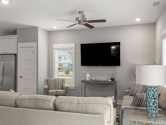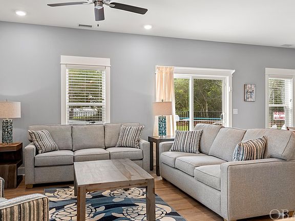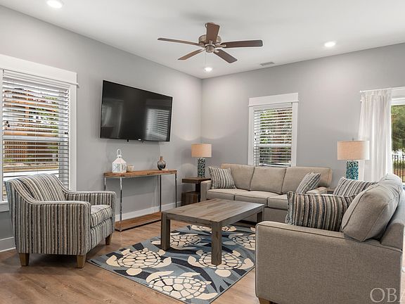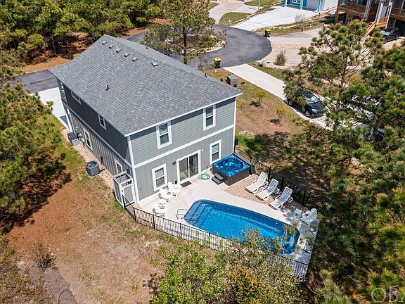 This custom-built 3-bedroom, 2.5-bath home in Monteray Shores combines quality construction and contemporary style with community amenities, making it a turn-key vacation rental property. Built in 2020, “Beachin’ Awesome” features an open concept family, dining, and kitchen area, a primary en suite, a garage, and a private heated, saltwater pool with a hot tub. The property is equipped with durable luxury vinyl tile flooring, 5-panel Shaker wood doors, stainless steel Whirlpool appliances, quartz countertops, carpeted bedrooms, and many other stylish finishes that discerning buyers seek. The home’s layout is a straightforward two-floor plan. The upper level includes the primary en suite with a sleek private bathroom and covered balcony, two guest rooms with a shared full bathroom, and a convenient laundry room with a full-sized washer and dryer. Each spacious bedroom has a walk-in closet. The ground level showcases an open flow between the kitchen, dining, and family room, with sliding glass doors leading to the heated saltwater pool, hot tub, and entertaining area. A powder bath is also located on this level. The entry foyer, with its full glass door, provides a sightline straight to the saltwater pool buffered by trees, creating a bright and open feel. An attached garage offers easy access and extra storage space for beach toys. Situated on a quiet cul-de-sac street, this x flood zone property enjoys the numerous amenities of Monteray Shores. The community offers a clubhouse, fitness center, pool, tennis courts, a boat ramp, and a sound-side gazebo and pier. A walk or bike ride takes you to the beaches, shopping, dining, and attractions of Corolla. A short car ride brings you to the Corolla Light Towne Center and nearby dining and attractions. This is a fantastic opportunity to own a meticulously maintained, almost new, contemporary vacation home in an amenity-rich community.