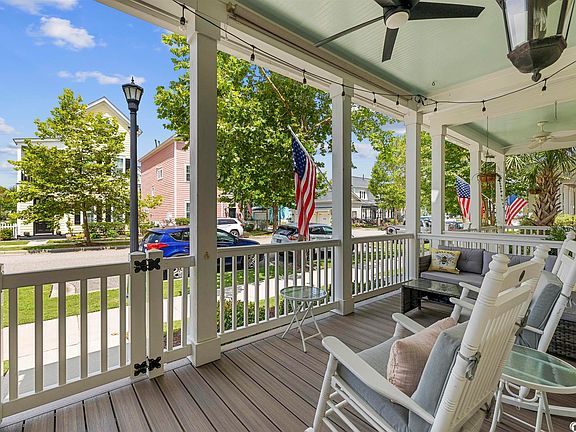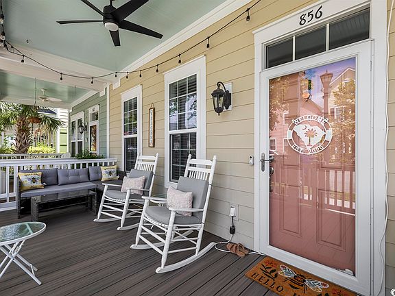 The 3 bedroom, 2.5 bath true townhome is move in ready in the desirable location of The Market Common! It features a 2-car garage, granite countertops, tile backsplash, stainless steel appliances, shiplap, upgraded light fixtures, hardwood floors downstairs AND on the stairs, a driveway in the back, and a cozy front porch.The front porch was recently upgraded to Trex Decking and is low maintenance!The owners' suite upstairs features a double vanity, tub, shower, two walk-in closets and a ceiling fan. The other two bedrooms are spacious and share a bathroom with a tub/shower combo. The laundry room is upstairs and has been upgraded with extra cabinets. Downstairs there is a half bath and recently added butler's pantry with extra cabinets and countertop space. Get some fresh air on the front porch and enjoy the ocean breeze that comes from the Atlantic which is a mile away. Living in this community there is easy access to the beach, dining, shopping, and entertaining... all is a golf cart ride, bike, or walk away! The HOA includes theMarket Common amenity center located behind Barnes and Noble. Year round enjoy a large lap pool, two hot tubs, a lazy river, kiddie pool and area, ping pong tables, facilities and a gym! The HOA also includes exterior insurance, internet, cable, exterior maintenance, exterior pest control and landscaping. Trails, bowling, a dog park, a movie theater, playgrounds, and gyms are all just some parts of living the lifestyle of The Market Common. Schedule your showing today!