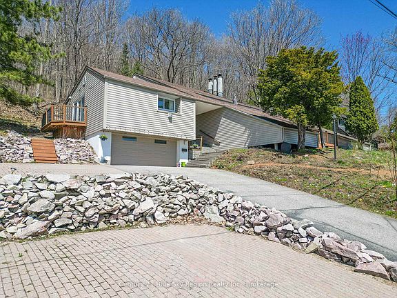 Built right into the escarpment and surrounded by nature, this one-of-a-kind home is more than just a house its a retreat. With decks on nearly every side, you can follow the sun or find shade throughout the day. Whether you're enjoying coffee on the kitchen patio, hosting dinner on the dining room deck, or stargazing from the upper-level terrace that overlooks the city, theres no shortage of peaceful spaces to relax.Step inside the foyer and head in one of two directions: one leads to a private primary suite or self-contained apartment with its own separate entrance, perfect for multigenerational living, guests, or added income. The other leads into the heart of the home, featuring a unique rec-room, games area, bedroom, spacious laundry room, and a two-piece bath. Theres also a separate shower and sauna area that connects to the show stopper an impressive indoor pool room with soaring ceilings, great natural light, and direct access to the upgraded outdoor deck. Since purchasing in 2017, the current owners have extensively renovated the home with a strong focus on restoring the pool area and updating the homes major systems. The pool room has been completely refinished and updated with new paint, concrete, heater, dehumidifier, lights, pump, filter, and cover. The sauna has been rebuilt and improved with a new stove, lighting, insulation, and custom shower. The home also features some new flooring throughout, updated mechanicals including a tankless water heater and furnace, a new electrical panel, updated appliances, fresh paint, and much more. The fireplaces have been removed and refinished areas give the home a more efficient layout.Upstairs, the main level includes a sun-filled living room with vaulted ceilings, a formal dining area, and a kitchen that overlooks your own private forested escarpment. The primary bedroom on this level includes a walk-in closet and its own deck. The top floor features two more bedrooms and a full bath.