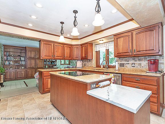 Location, location, location This home is conveniently located near the freeway, Jackson National Life, Delta Dental and MSU. This beautiful, Mike Huntley, custom built home, offers a bright, open floor plan, a huge primary bedroom and bath with a large walk-in closet, a built-in safe, cherry wood baseboards & crown molding throughout, a large formal dining room, a beautiful kitchen with ample amounts of cabinet space, cathedral ceilings with fans, and plenty of windows to let in a great deal of outdoor light. This home also features a GeoThermal Heat Pump System that heats and cools the home.