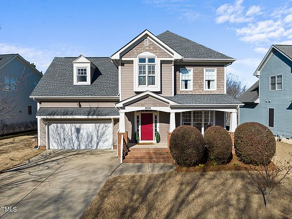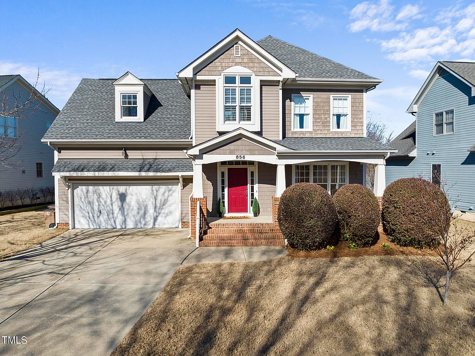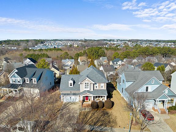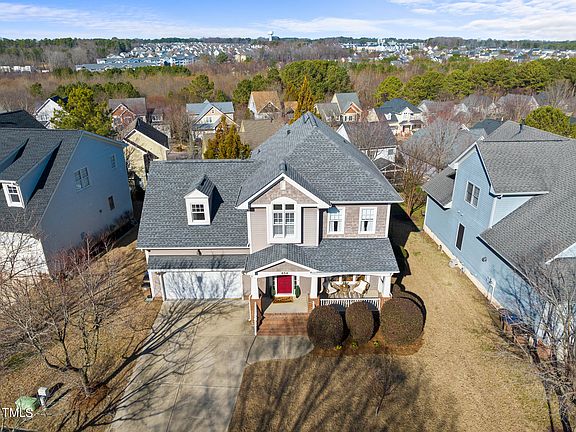 HERITAGE! Across the street from the Lake Pool, tennis courts, playground and fitness studio and just over the Lake from Heritage Golf Course and 1250 Restaurant, this 3 bed/3 bath, 2352sf property has it all! Entering the large foyer, your attention is pulled from the breathtaking capiz chandelier in the formal dining room to the gleaming hardwoods leading into the living room warmed by the gas fireplace. Natural light abounds in the open floor plan spanning the width of the first floor living area, breakfast room and kitchen. Plush, 3 year young carpeting on the second floor envelopes the massive, freshly painted bonus room and bedrooms in cozy comfort. The primary retreat with cathedral ceiling boasts a palatial closet, large soaking tub, separate tiled shower with rain shower head, double vanity and separate water closet...a home owner's dream! Witness dazzling sunsets from the covered front porch or entertain the neighborhood on the oversized, tiered, Trex deck! Corral your furry friends in the fenced back yard. Central to everything Wake Forest, return from restaurants, shopping, golf, pool, tennis or a work out to your attached garage and shake off the day's attire in the adjacent utility room complete with washer and dryer that convey. This property is move in ready with plantation shutters or blinds/shades in the majority of rooms and newer appliances that all convey! This is the one you've been waiting for!