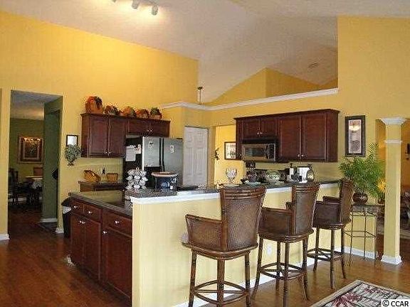 Glorious lake views greet you from this well maintained home in desirable Little River community. Open and spacious plan boasts volume ceilings, expansive kitchen open to keeping room with fireplace, Carolina Room, bonus room and many architectural features including decorative pillars and ledges. Filled with upgrades at construction including wood and tile floors in all public areas and surround wound wiring in great room and bonus room. Security system in place but is not connected to service. Situated on a maturely landscaped homesite with in-ground sprinkler system as well as stamped driveway. Community pool, tennis and playground. -Propane for fireplace is supplied by sellers individual tank and not a specific company. -Flat screen television in Great Room will convey.