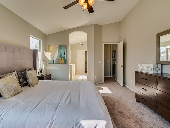 This home is conveniently located just a 10-minute walk from Harmony Hollow Park and Navarrete Park, and less than a half-mile from the dining and shopping options at the Chandler Marketplace. Upon entering, the interior impresses with vaulted ceilings and an open concept floor plan. Pass through the living room to the kitchen, equipped with stainless steel appliances, granite countertops, and an island with breakfast bar seating. The adjacent dining area has sliding glass doors leading to the covered back patio with an extended uncovered section. Relax in the spa-like Master suite, boasting a separate garden tub and shower, dual vanities, private toilet room, and a walk-in closet. The home has been renewed with a fresh coat of interior paint and new carpet! All Opendoor homes come with a 30-day satisfaction guarantee and one-year premium warranty. Terms and conditions apply. Open House: Mon-Sun, 6am-9pm