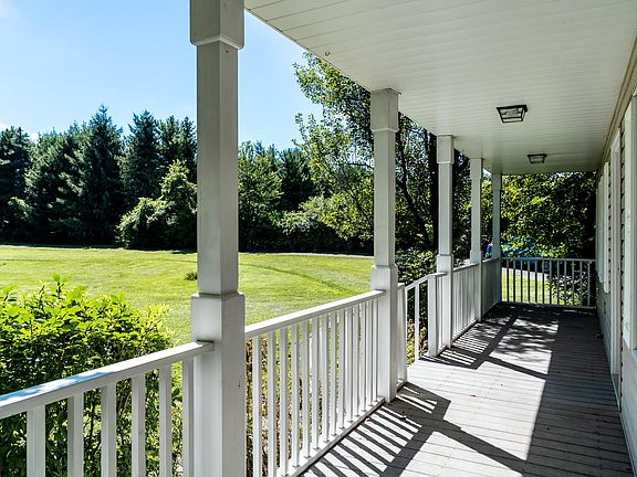 This traditional style home is situated on approx. 2 beautifully treed acres. Full front porch leads into an open & bright floor plan. Finish details are remarkable-the home is immaculate, ready to welcome new owners. Numerous windows open to lovely wooded views. 3 car side load garage w/single door w/extra height & double door w/openers. Unique lighting & ceiling fans throughout. Extra large finished storage accessible from upstairs bdrms via closet size doors. Addl features: hdwd floors from foyer through great room to dining area. Great room has WBFP & halogen track lighting. Kitchen w/SS sink, microwave & pantry space. 1st floor laundry. Master suite w/walkin closest + built-ins, bath w/Jacuzzi/shower unit +marble sink & closet. Dressing area w/vanity/mirrors. Preapproved Buyers Only.
