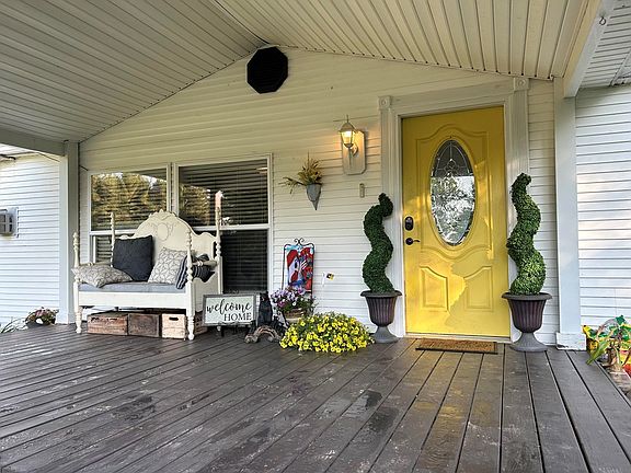 Nestled in a serene, wooded area, this charming 3-bedroom, 2-bathroom ranch-style home offers a peaceful retreat from the hustle and bustle. Imagine waking up to the gentle rustling of leaves and enjoying your morning coffee on the covered front porch or in the sunroom/addition. Step inside to find a spacious, open-concept living area that flows effortlessly into a modern kitchen. Outside, the large outdoor patio and inground heated fiberglass saltwater pool provide a luxurious oasis for relaxation and entertainment. With a 2-car detached garage and plenty of privacy, this home is perfect for those seeking both tranquility and convenience. Don't miss out on this beautiful property.