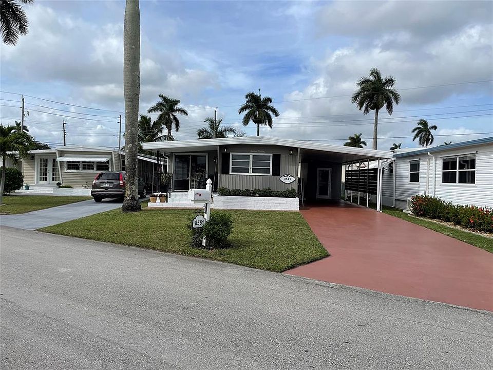 Truly remarkable 2/2 with a wide open concept that has the feel of a double wide - Freshly painted inside and out - even the driveway - split bedroom plan - Newer central A/C and water heater just installed in 2023 - -All newer appliances throughout - gorgeous luxury vinyl plank floors throughout - -newer crown molding and baseboards - -updated bathrooms and kitchen with butcher block countertops with shaker style cabinets and a rolling island - -spacious closets with built in storage - -newer electrical meter box and panel outside - Huge carport and shed - - Covered front porch and backyard patio seating - Meticulous home that is turn key - -tastefully furnished through out - -all you need is your toothbrush - -assoc. states it is HOPA verified - -Truly a must see - -Sq Ft Approx..